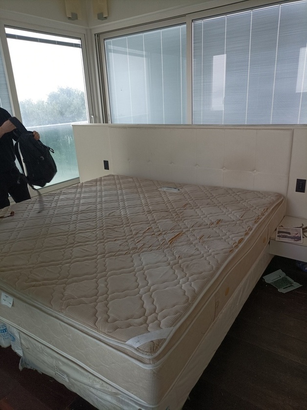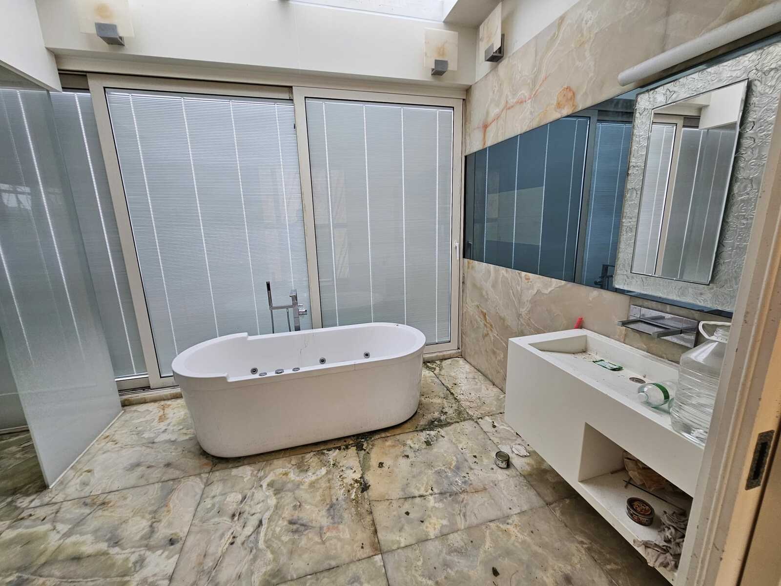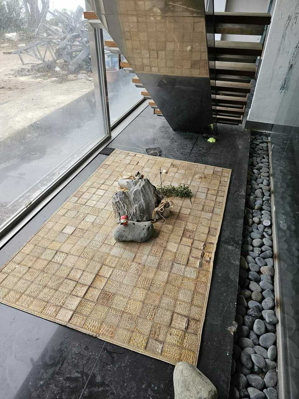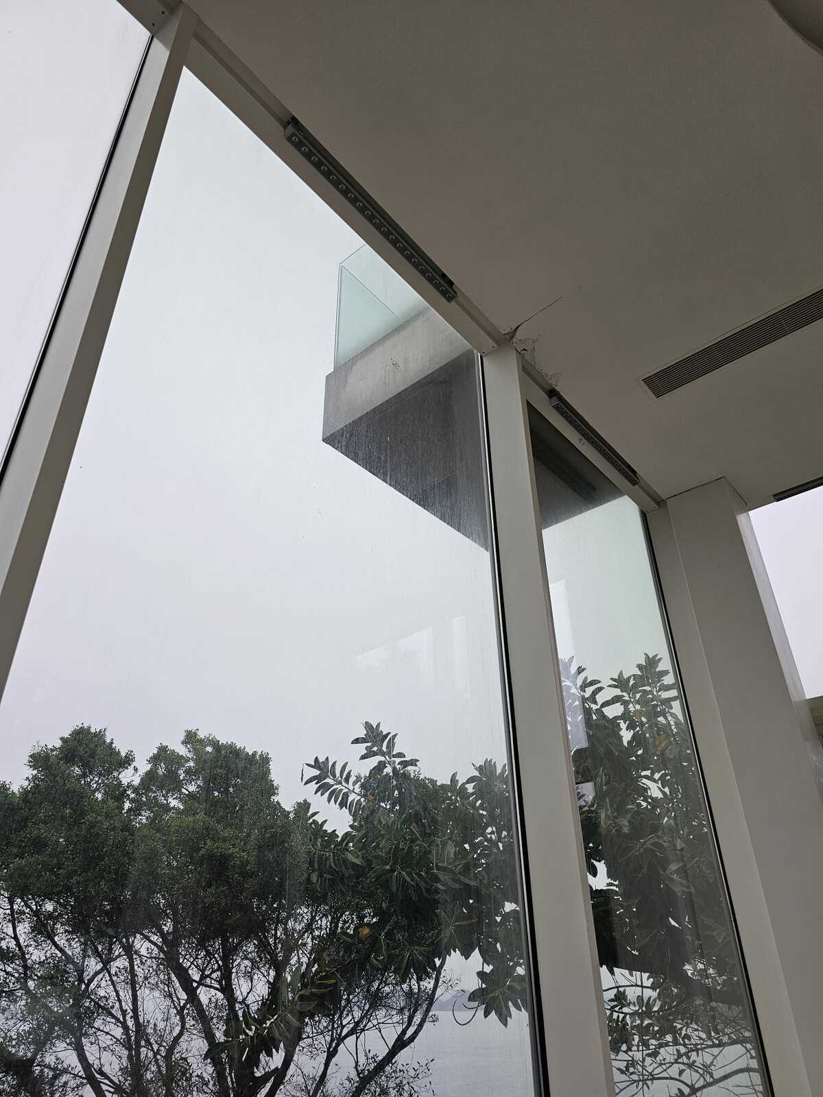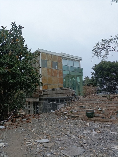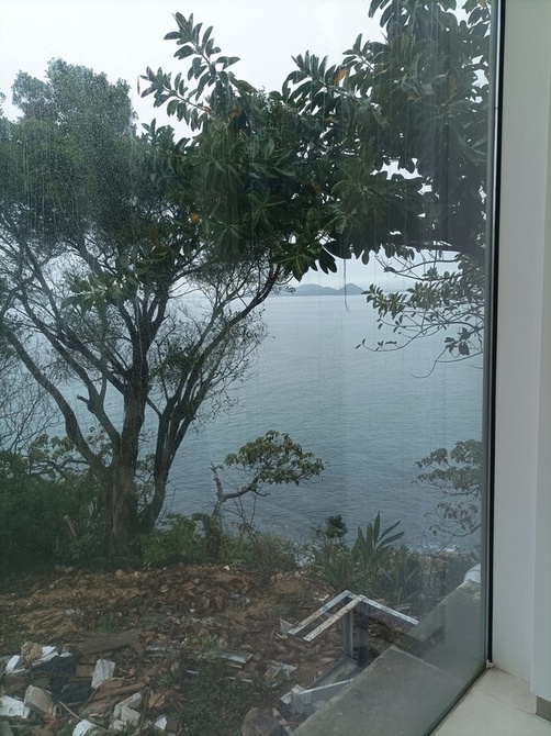 Du genre grandes fenêtres vue sur la mer et procès en cours. Petit esprit ravalement de façade façon burin et pointerolle par les zouaves du gouvernement. Un mur en brique pour dissimuler la chambre. Un jardin zen sous un escalier Hol en Bol. Des peintures de propagande comme si on était à Kaliningrad. Une piscine creusée à même la roche sédimentaire, à 40 centimètres de la mer, sans pour autant la toucher. Parce que quand on est riche, on peut se payer l’océan sans le sel et sans l’odeur de pisse de poisson.