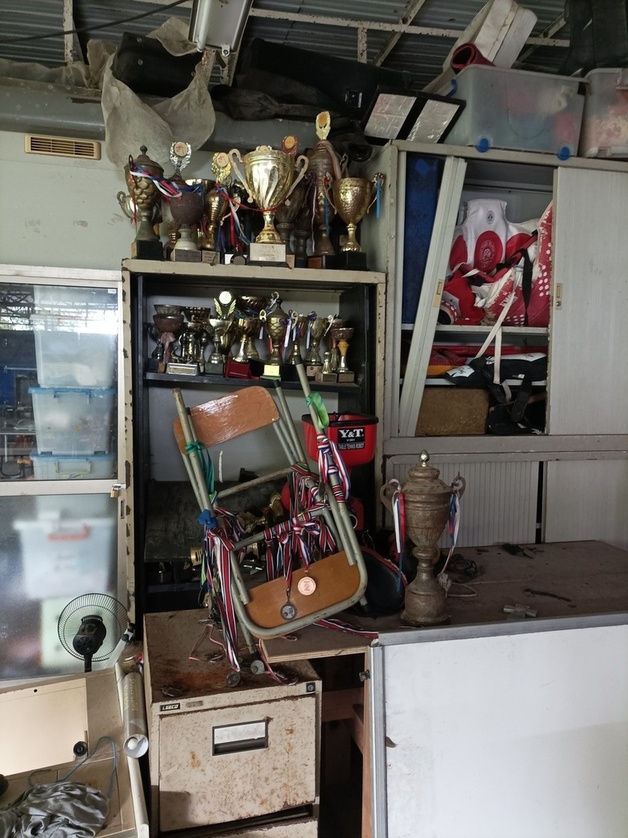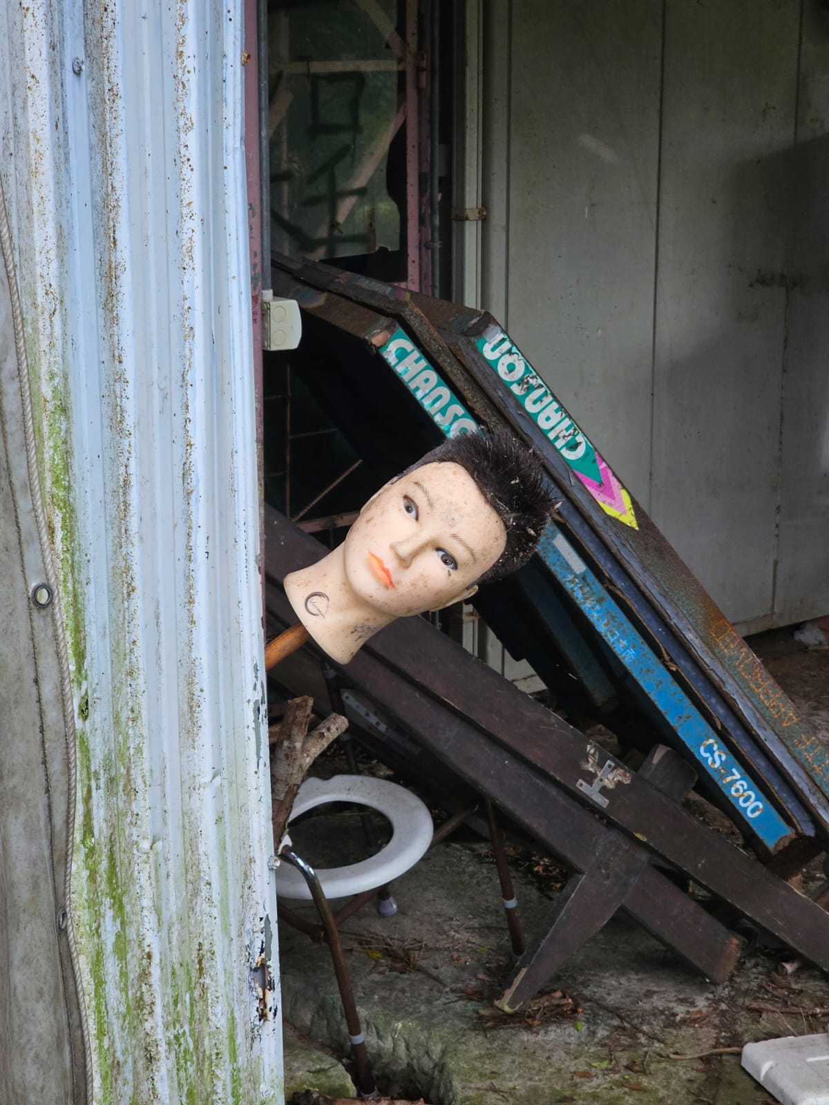 J’entre dans la jungle, mais je me méfie, il y a avait des enfants drogués avant, ils sont ptet encore là cachés à l’ombre des cocotiers. Ça me rappelle le Vietnam, je regarde là où je mets les deux pieds avant de marcher, et je chante pas de Claude François au Karaoké. J’avance dans des bâtiments désaffectés, c’est un vrai bordel, pas celui où tonton, il va le jeudi pendant sa pause dej, plutôt celui de ma chambre, avec des legos partout. Il y a de tout ici, des instruments qui font de la musique quand on tape ou on souffle, les haltères originales de Bill Kazmaier avec des poids en béton, plein de médailles comme ça tout le monde est gagnant, une cuisine gigantesque, des têtes à perruque pour donner des coups de ciseaux, des montagnes de PQ, des posters de Tom Cruise le meilleur, des photos sur les murs des petits junkos, un parc à huîtres, parce que y’a pas plus rédemption que d’adopter un mollusque, des frigos dehors, une Playstation 2 dans des cahutes construites en tôles ondulées, du matériel de Ping Pong, des falourdes de merde. Quelle bonne condition que celle de gosse toxico.