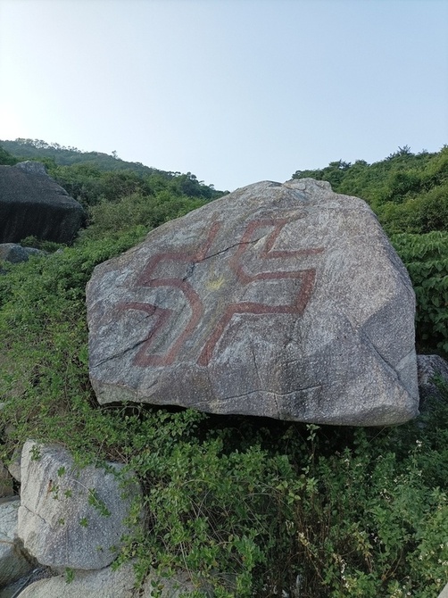 Le sampan arrive en vue d’un énorme rocher avec une croix gammée. C’est l’entrée du culte, on va faire des pieds-bouches contre des nazis, façon Indiana Jones, tant qu’il y a un chalice à la fin ça me va. Après avoir remis mes lunettes, c’est juste un gros symbole chrétien bizarre de type croix, sans grand intérêt, mais faut que tu suives, alors je mets de la tension dans l’histoire, comme il faut mettre du beurre dans les épinards, et des crocs de sucre sur la chouquette.