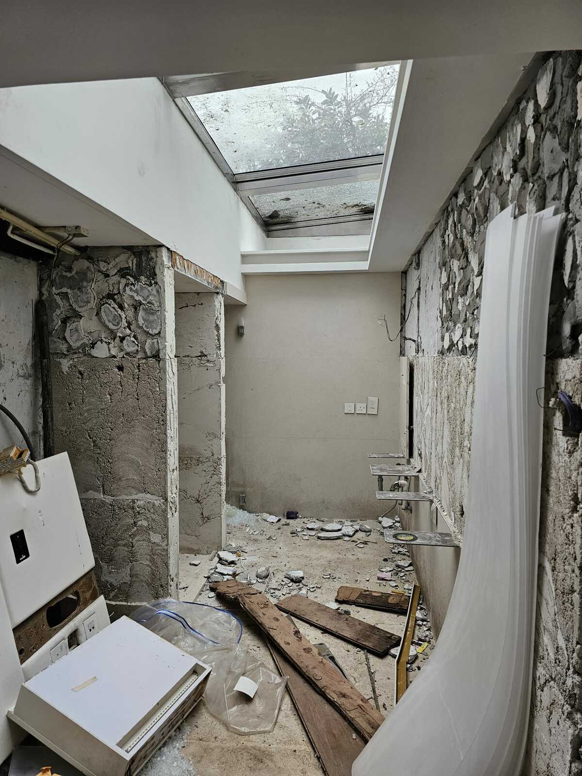 Du genre grandes fenêtres vue sur la mer et procès en cours. Petit esprit ravalement de façade façon burin et pointerolle par les zouaves du gouvernement. Un mur en brique pour dissimuler la chambre. Un jardin zen sous un escalier Hol en Bol. Des peintures de propagande comme si on était à Kaliningrad. Une piscine creusée à même la roche sédimentaire, à 40 centimètres de la mer, sans pour autant la toucher. Parce que quand on est riche, on peut se payer l’océan sans le sel et sans l’odeur de pisse de poisson.
